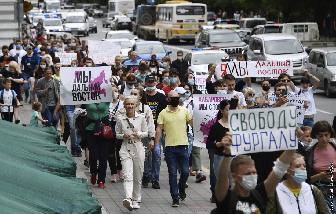 Вместе с Хабаровском на акции в поддержку губернатора Сергея Фургала в субботу вышли тысячи жителей Комсомольска-на-Амуре и Владивостока.