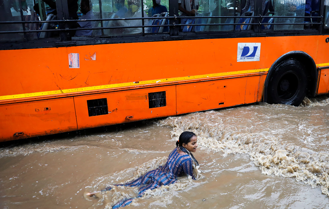 В индийском Нью-Дели из-за проливных дождей затопило ряд улиц
