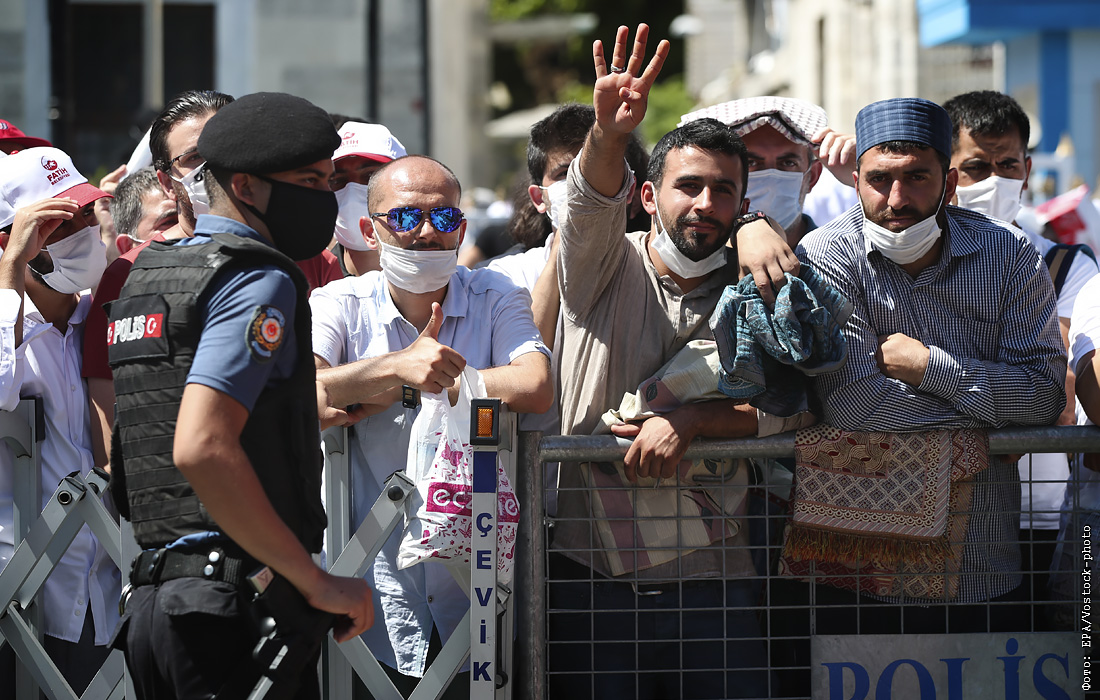 Церемония открытия комплекса Айя-София в статусе мечети прошла в Стамбуле. Собор Святой Софии до недавнего времени носил статус музея. К архитектурному комплексу с самого утра начали приходить мусульмане, желающие принять участие в пятничной молитве, которая впервые за почти 90 лет пройдет в Айя-Софии.