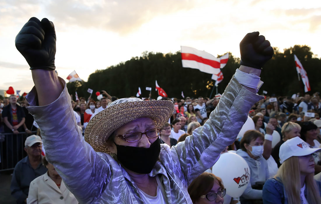 Многотысячный предвыборный пикет в поддержку кандидата в президенты Белоруссии Светланы Тихановской в Минске посетили не менее 60 тысяч человек. Тихановская решила участвовать в выборах вместо своего мужа, блогера Сергея Тихановского, который находится под арестом.