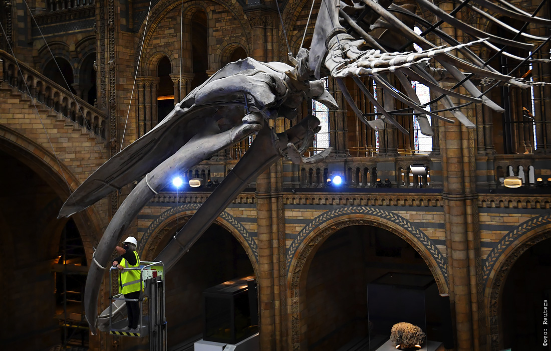 Скелет синего кита в лондонском музее естествознания