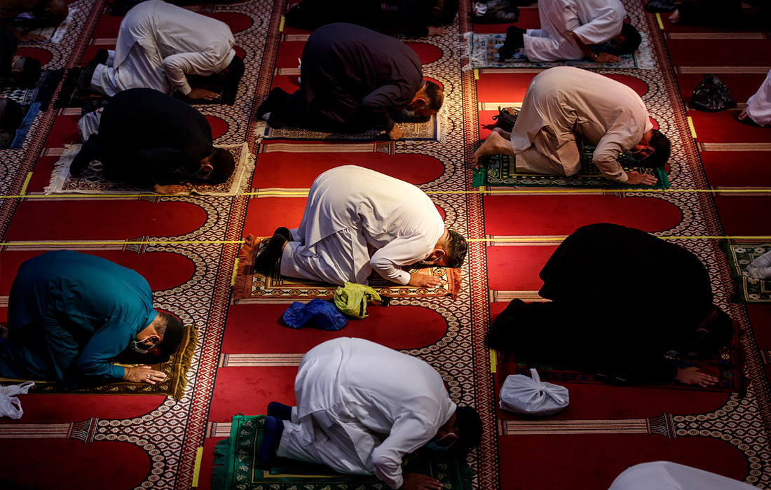 Мусульмане отмечают один из главных религиозных праздников Курбан-байрам. На фото: верующие в мечети в Брэдфорде, Великобритания.