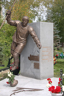 Памятник игроку команды "Авангард" Алексею Черепанову, установленный на Старо-северном мемориальном кладбище