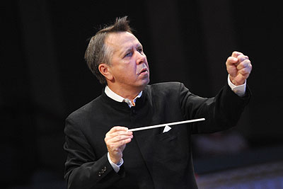 Художественный руководитель Российского национального оркестра Михаил Плетнев во время выступления на открытии "Большого фестиваля Российского национального оркестра" на Новой сцене Большого театра