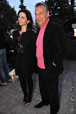 Актриса Алиса Хазанова с отцом Геннадием Хазановым на премьере фильма режиссера Н. Хомерики "Сказки про темноту" в кинотеатре "Горизонт"