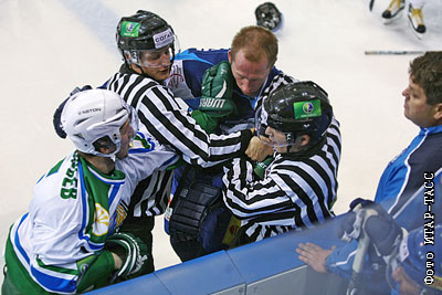 Драка во время матча чемпионата КХЛ: "Динамо" (Минск) – "Салават Юлаев" (Уфа) – 3:2