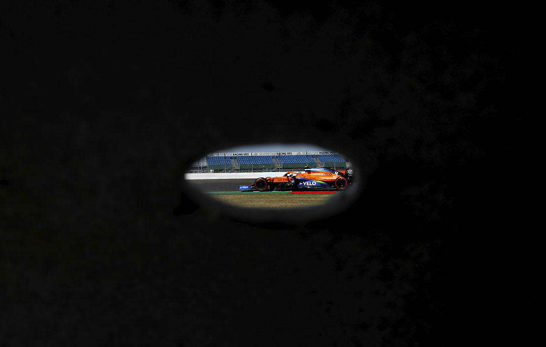 Пилот McLaren Ландо Норрис во время тренировки "Формулы-1" в Великобритании