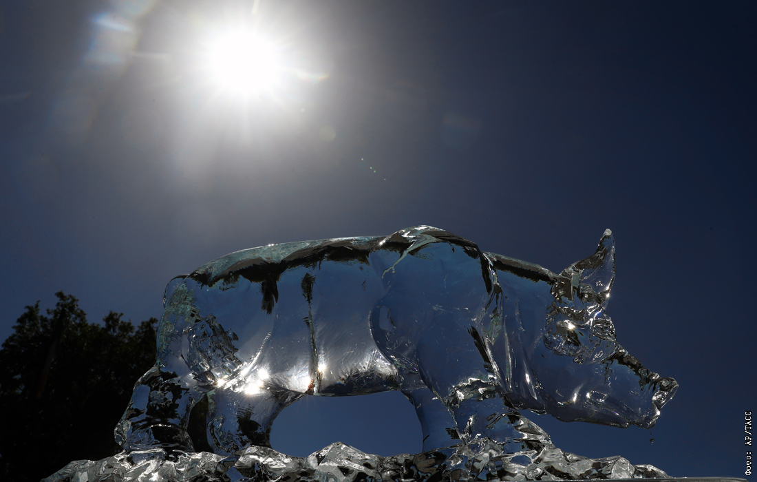 В Лондоне зоозащитная организация PETA создала скульптуру изо льда в виде свиньи