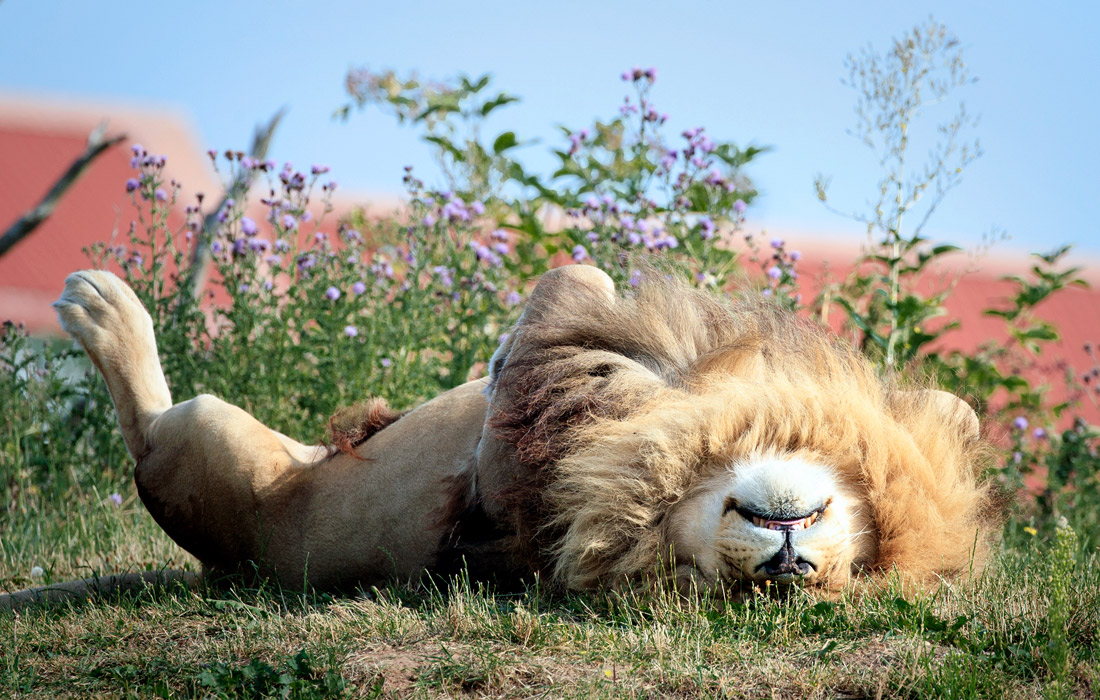 Ежегодно 10 августа в мире отмечается день льва. На фото: лев отдыхает в Йоркширском парке дикой природы, Великобритания.