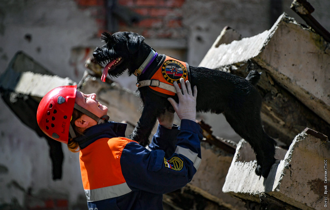 Тренировка собак МЧС России по поиску людей в условиях техногенной катастрофы прошла во Владивостоке