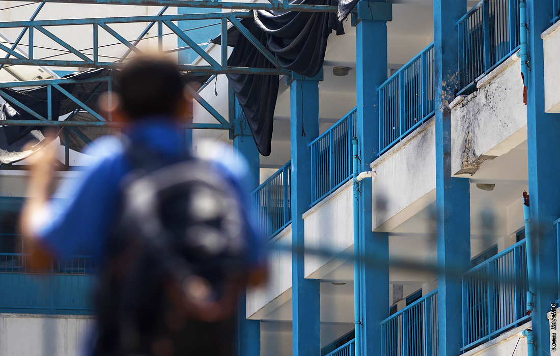 Военный самолет выпустил ракету, которая упала на школу Ближневосточного агентства ООН для помощи палестинским беженцам в западной части города Газа