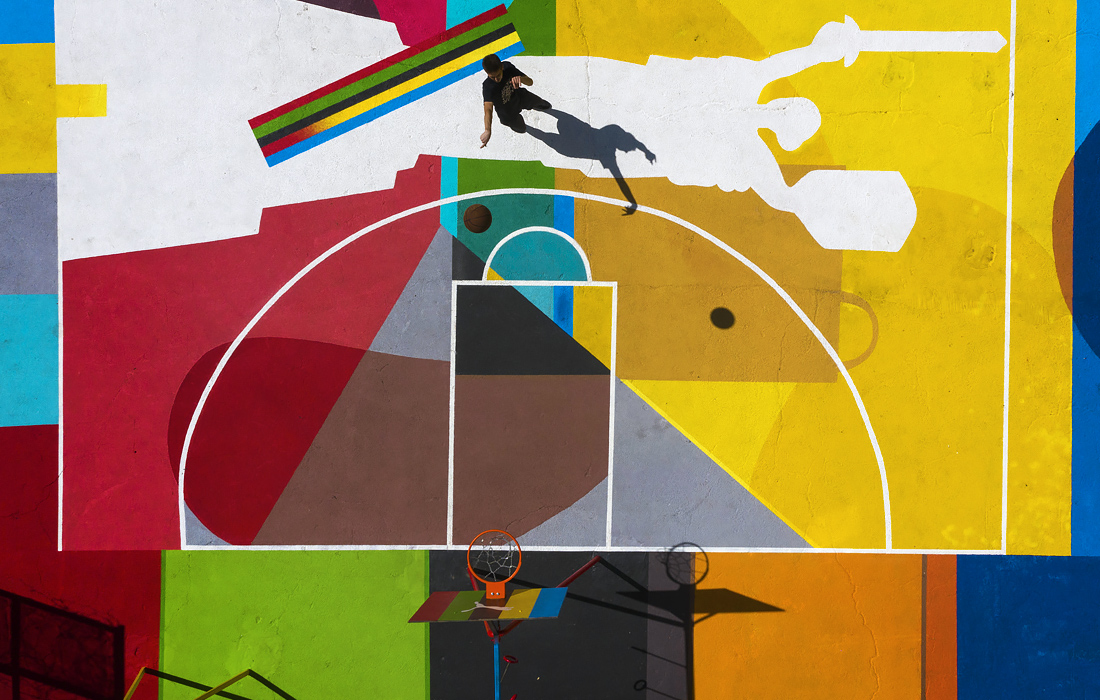 Баскетбольная площадка во дворе многоквартирного дома в Киеве