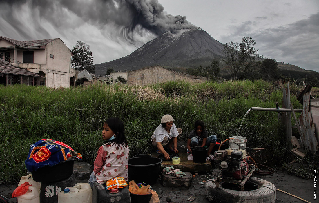 Вулкан Синабунг, расположенный в северной части острова Суматра, продолжает выбрасывать пепел и дым