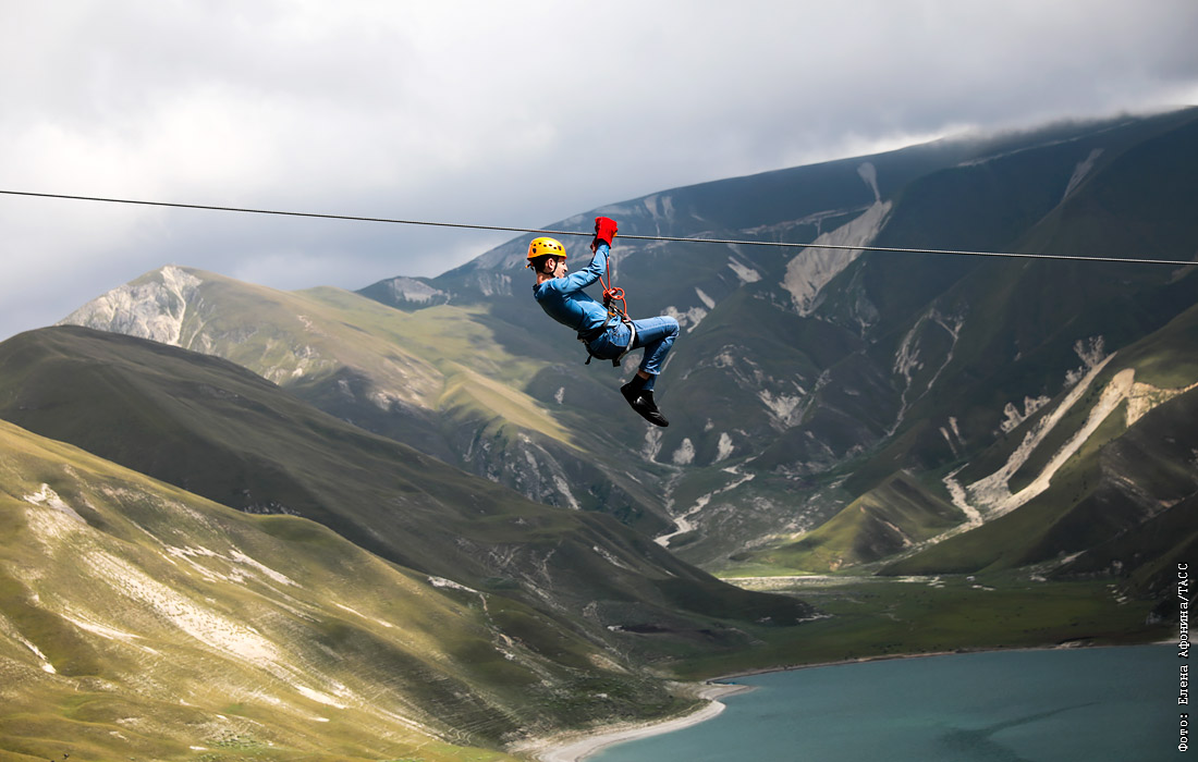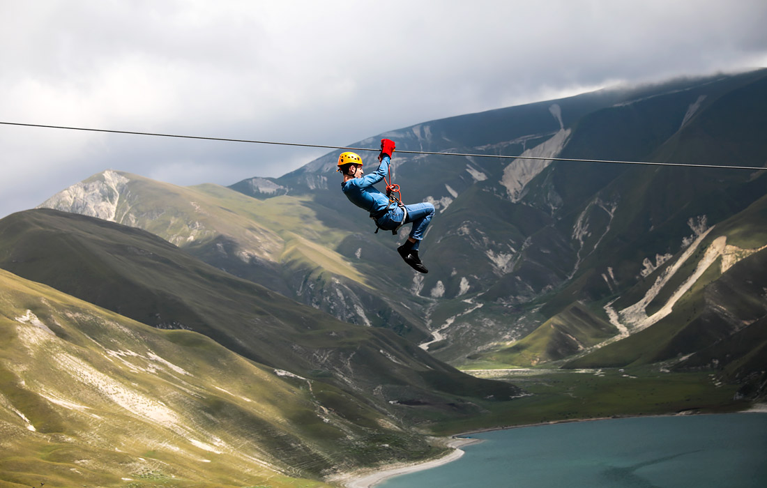 Аттракцион Zipline на озере Кезеной-Ам в Чеченской республике