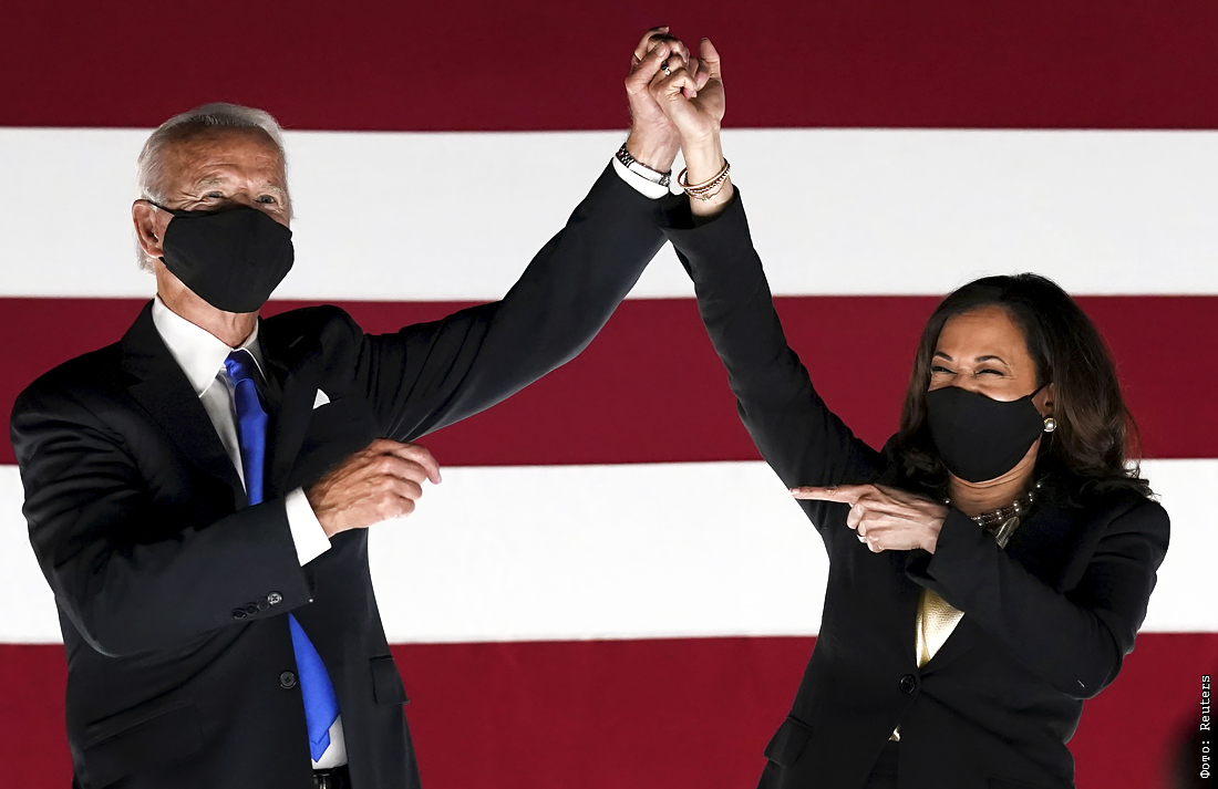 Джо Байден официально стал кандидатом в президенты США. На съезде демократов он принял предложение партии баллотироваться на выборах 3 ноября 2020 года. На фото: Джо Байден и кандидат на пост вице-президента Камала Харрис празднуют во время четвертой и последней ночи Национального съезда Демократической партии.