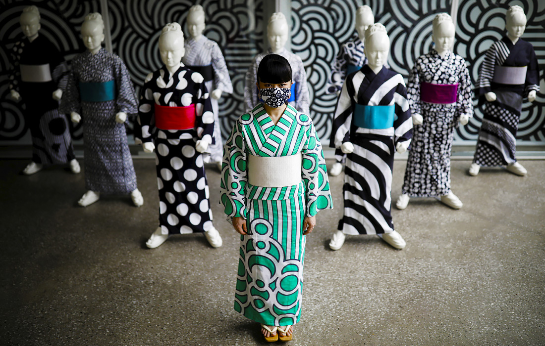 Японская художница Хироко Такахаши презентует юката, более легкое кимоно, подходящее для жаркой погоды