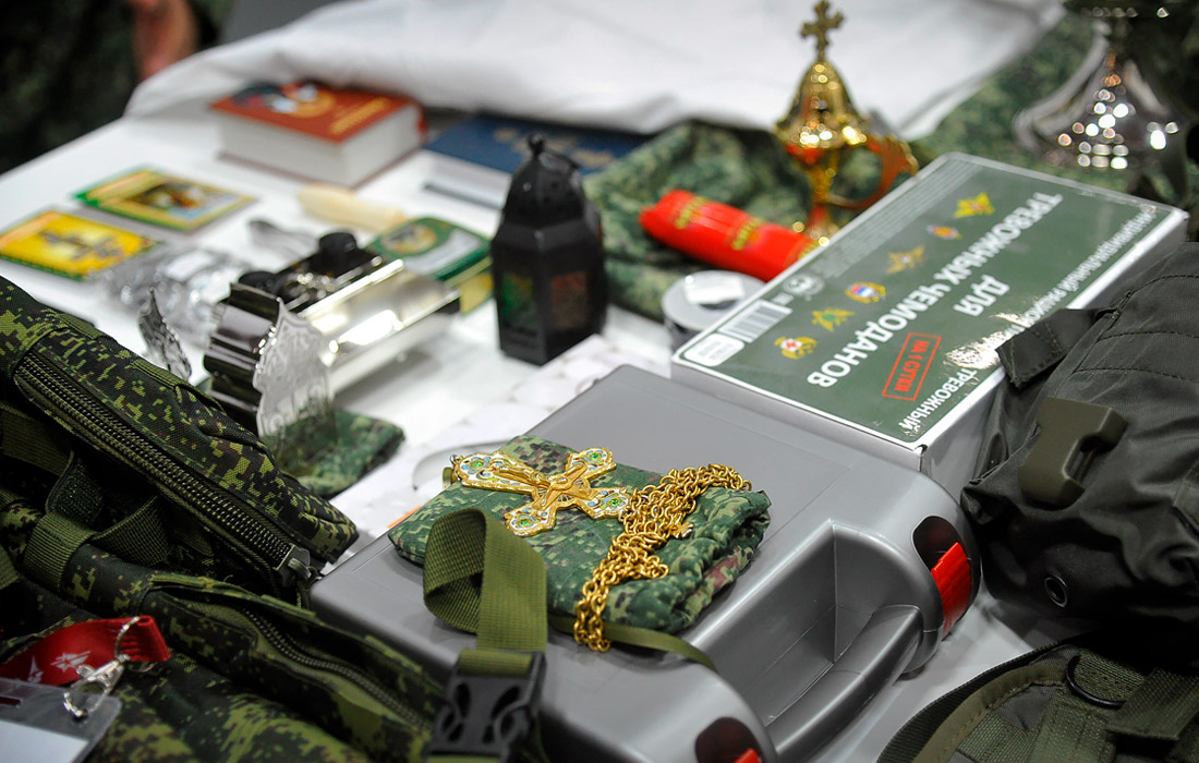 Церковная утварь на выставке вооружения в конгрессно-выставочном центре "Патриот"