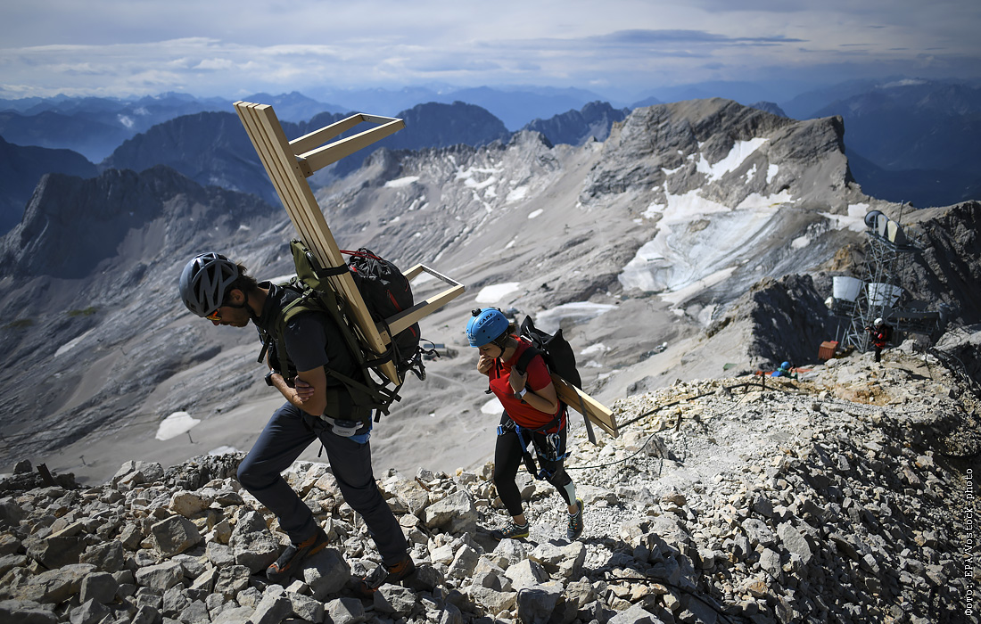 Гид Риккардо Мицио и фитнес-гуру Сара Вингендорф поднялись на вершину Цугшпитце, вдохновленные двухсотлетием со дня первой экспедиции в 1820 году. Официальные лица по туризму с австрийской стороны отправили команду на вершину со скамейкой весом около 11 килограммов. По словам организаторов, это самый тяжелый предмет мебели, поднятый на гору и собранный там.