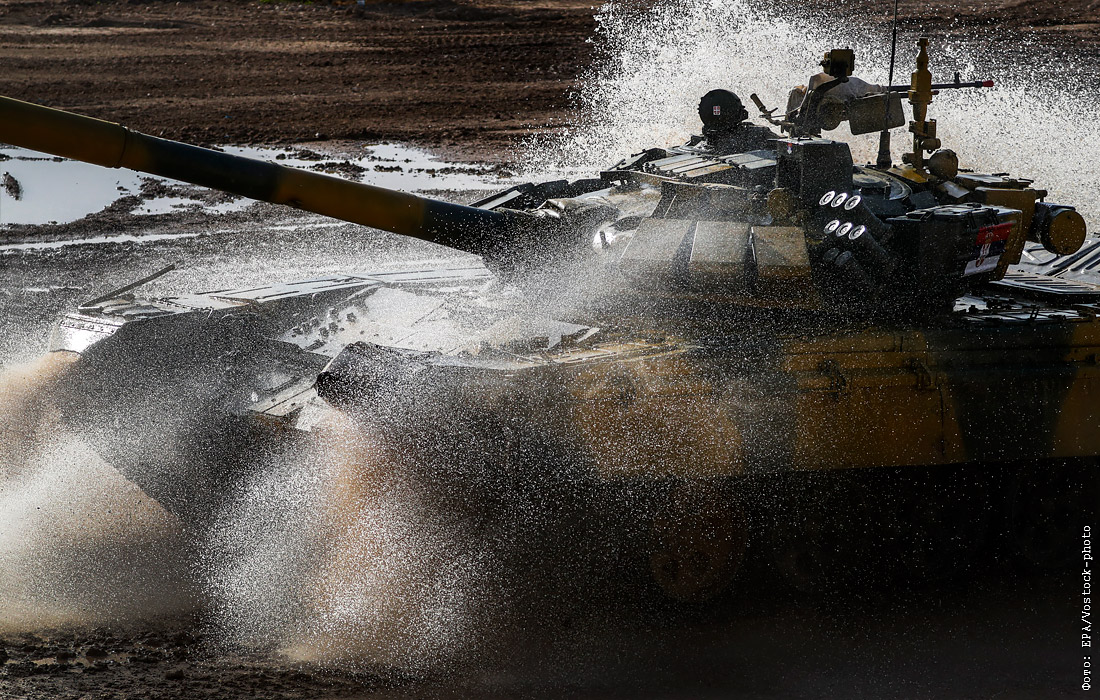Во время соревнований по танковому биатлону на подмосковном полигоне "Алабино"