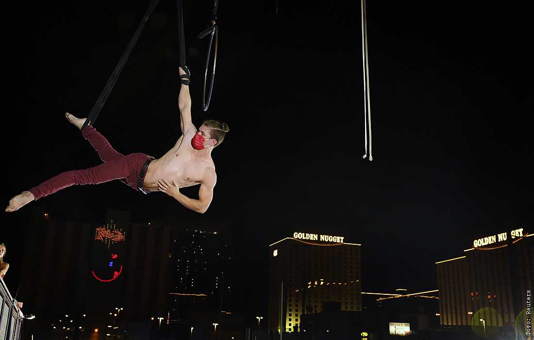 Безработные артисты устроили перформанс, чтобы привлечь внимание к проблемам работающих в Лас-Вегасе людей на фоне локдауна