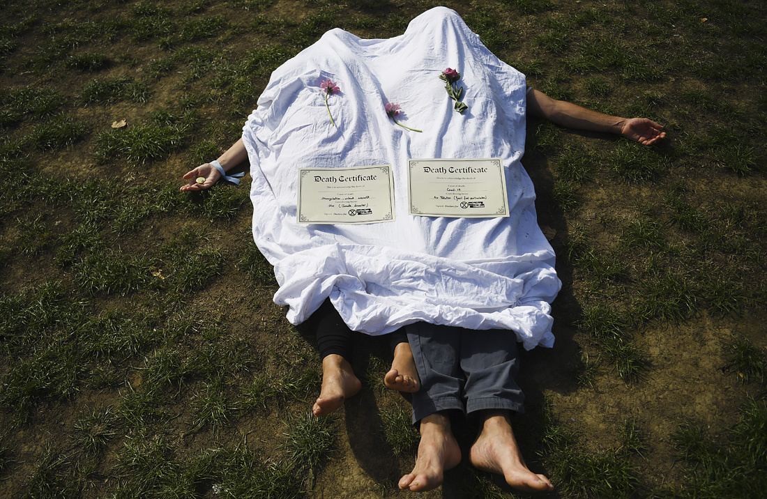 Глобальное экологическое движение Extinction Rebellion провело демонстрацию на Парламентской площади в Лондоне. Таким образом активисты решили напомнить людям о смертельной опасности изменения климата.