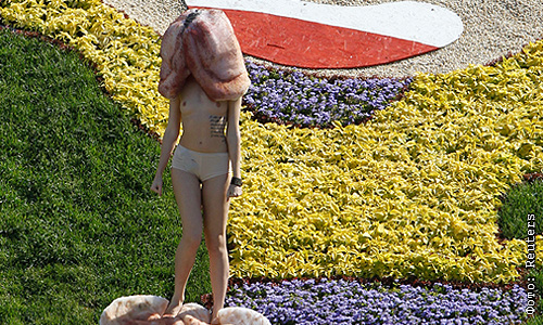 Активистки украинского женского движения FEMEN в пятницу провели акцию протеста в центре Киева, украсив пенисами клумбы, изображающие талисманов проходящего в Польше и на Украине Чемпионата Европы по футболу.