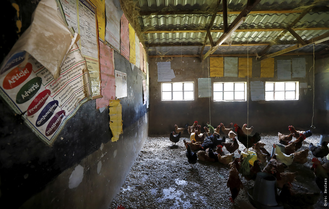 Две кенийские частные школы переоборудовали свои классы в курятники из-за пандемии коронавируса. Правительство Кении ранее распорядилось закрыть школы с марта 2020 года по январь 2021 года. Две школы, которые обычно полагаются на плату за обучение, оказались в состоянии финансового кризиса, вынудившего владельцев превратить классы в курятники, а игровые площадки - в овощные фермы.