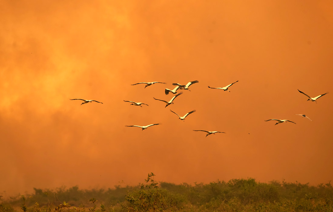 Природные пожары охватили крупнейшее в мире тропическое водно-болотное угодье Пантанал в Бразилии, где обитают тысячи различных видов растений и животных. Ситуация усугубляется самой сильной засухой в стране за последние 47 лет, сильными ветрами и 40-градусной жарой. Пожарные, военнослужащие и добровольцы стараются спасти животных, прежде чем их настигнет пламя.