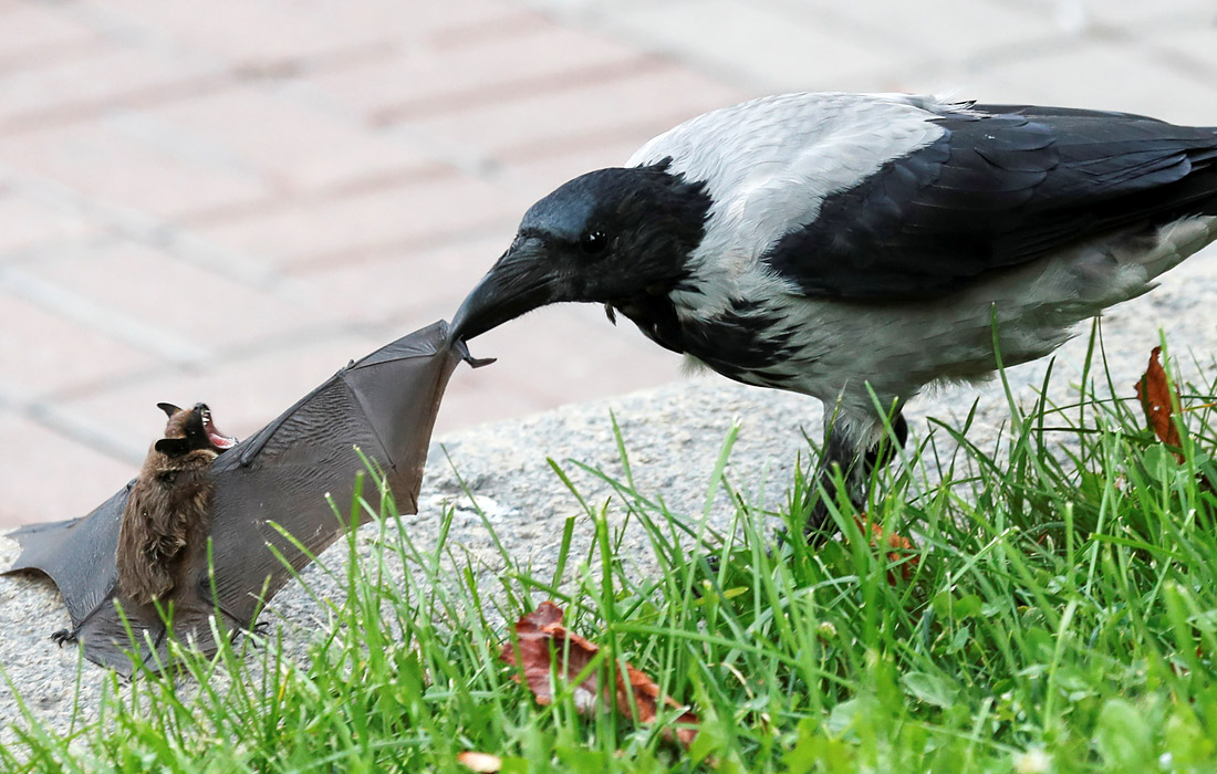 Схватка вороны и летучей мыши в центре Киева