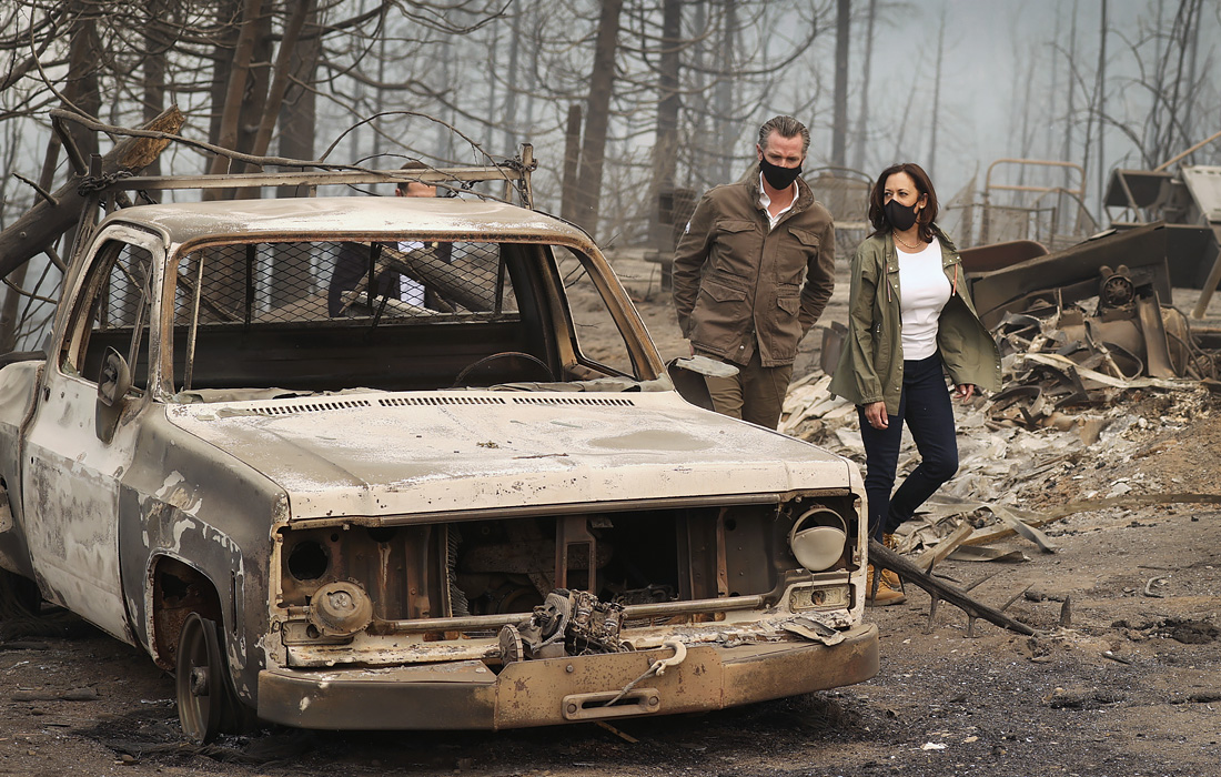 Кандидат в вице-президенты США от демократической партии сенатор Камала Харрис встретилась с губернатором Калифорнии Гэвином Ньюсомом на месте пожара в городе Оберри
