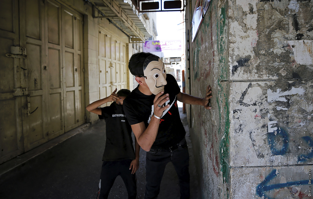 Участник акции протеста в палестинском Хевроне