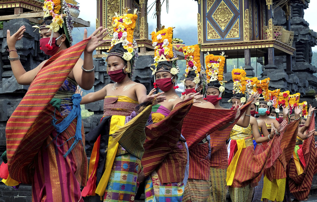 Выступление танцоров в храме на фоне вспышки коронавирусной болезни на Бали