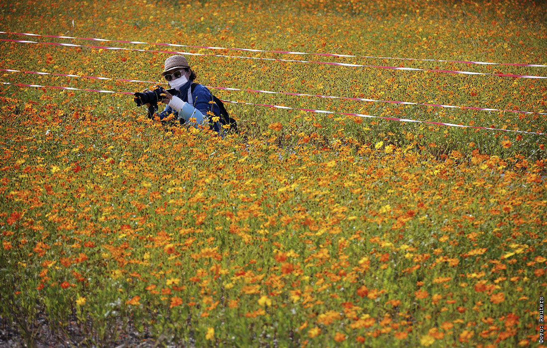Цветущие поля космеи в Южной Корее