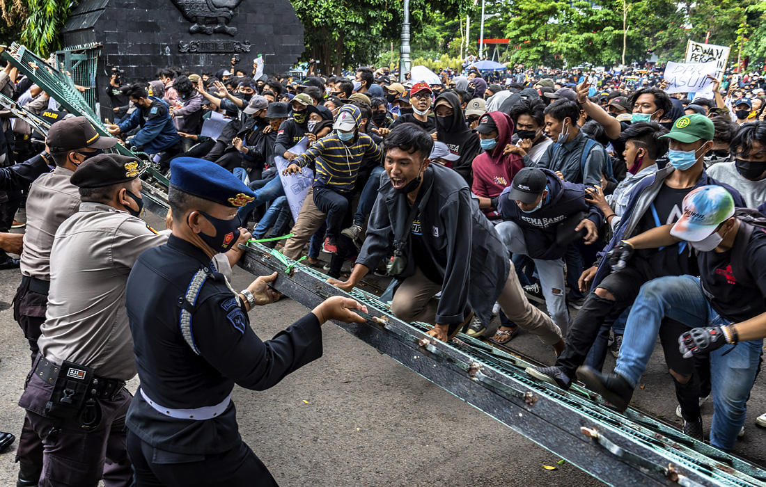 Полиция Индонезии второй день разгоняет протестующих, которые вышли на митинг против нового закона о рабочих местах в Центральной Яве