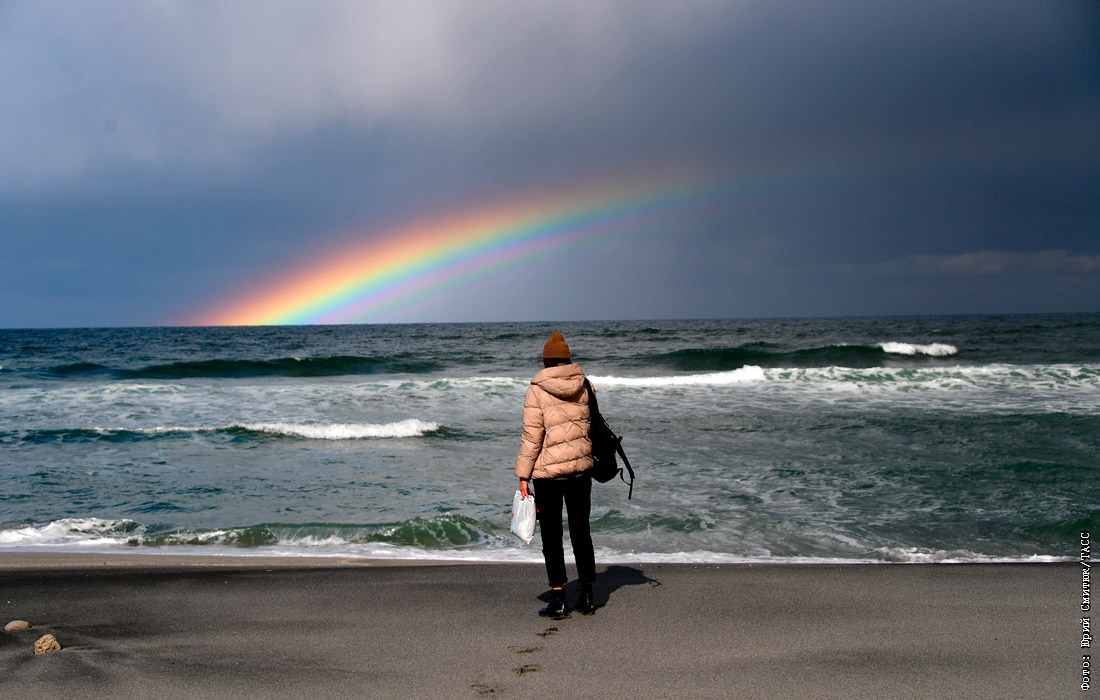 Девушка на берегу моря на острове Итуруп, Сахалинская область