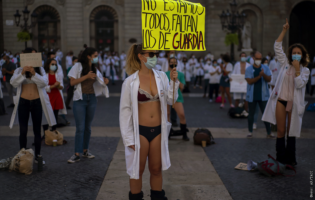 В Барселоне прошла акция протеста медработников. Они потребовали улучшения условий труда во время пандемии.