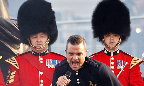 Певец Робби Уильямс выступил на праздничном концерте в честь 60-летия со дня вступления на престол королевы Елизаветы II.