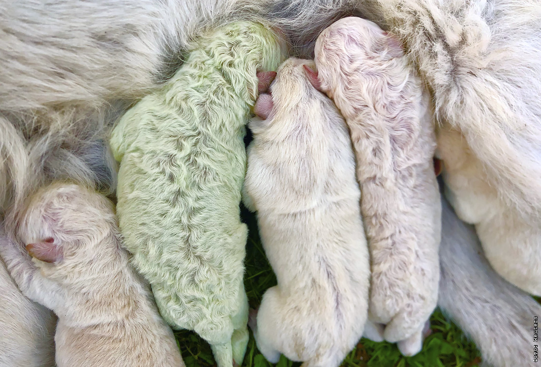 На итальянском острове Сардиния родился щенок с зеленом мехом