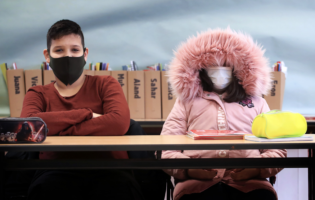 После осенних каникул в школах немецкого Бонна возобновились занятия. Ученикам положено носить маски и верхнюю одежду, поскольку в целях дезинфекции окна в течении дня в классах открыты.