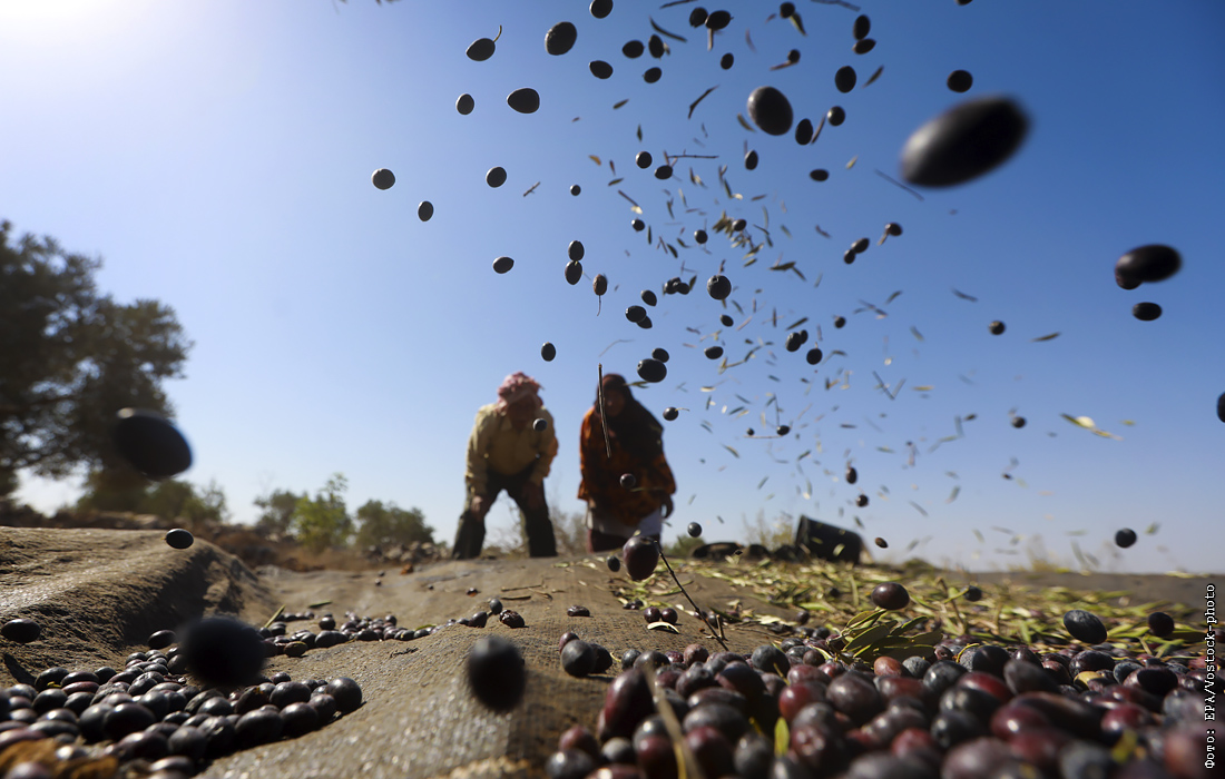 Сбор урожая маслин в палестинском городе ас-Савия