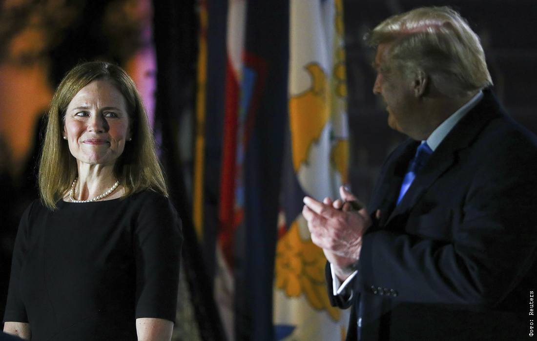 Накануне Эми Кони Барретт была приведена к присяге в качестве судьи Верховного суда США. Демократы отмечают, что после назначения Барретт могут быть изменены законы об абортах и программа медицинского страхования Obamacare.