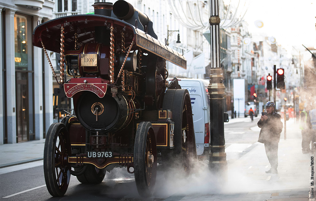 В преддверии торгов, посвященных золотой эре моторостроения, аукционный дом "Бонхамс" в Лондоне выкатил на прогулку один из своих лотов на паровой тяге