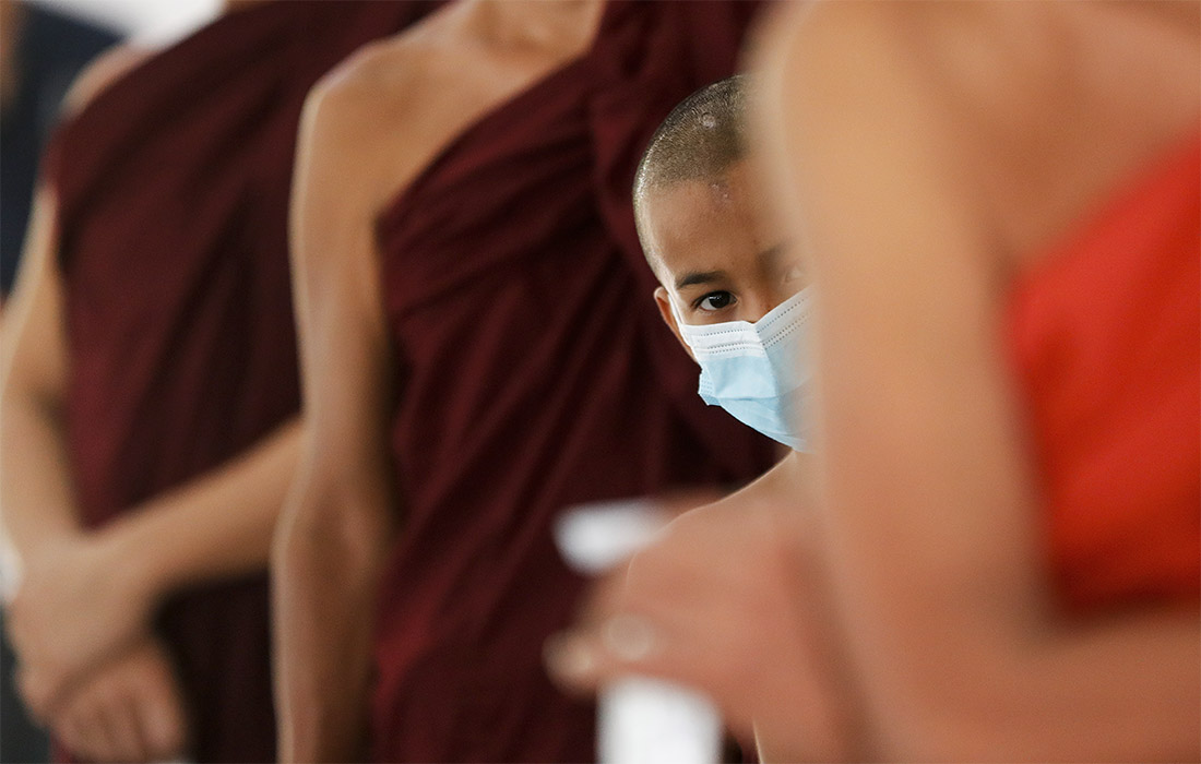 Монахи во время теста на COVID в Мьянме