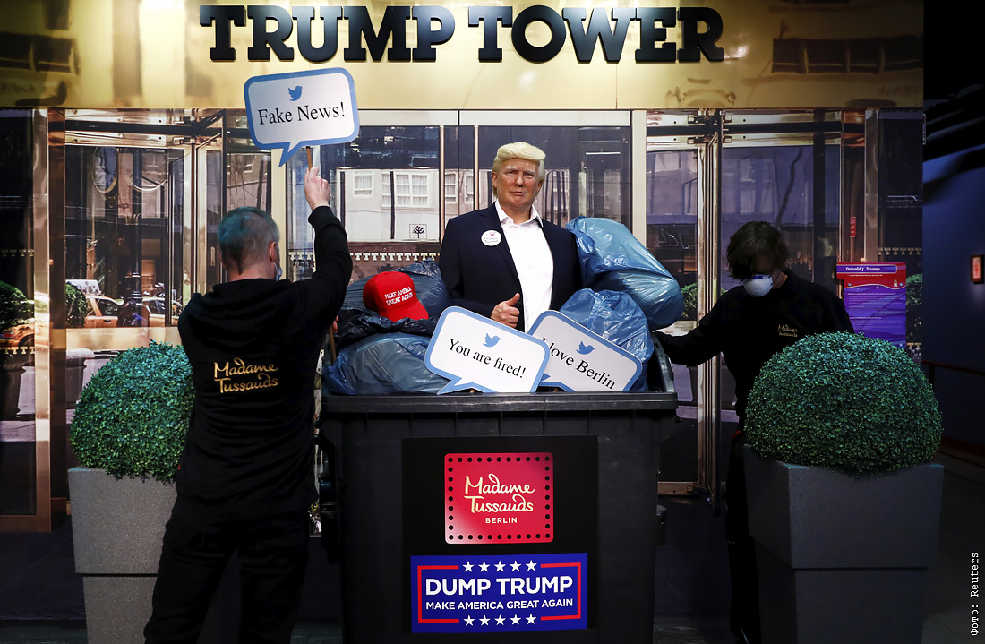 В Музее мадам Тюссо в Берлине установили восковую фигуру президента США Дональда Трампа в мусорном контейнере