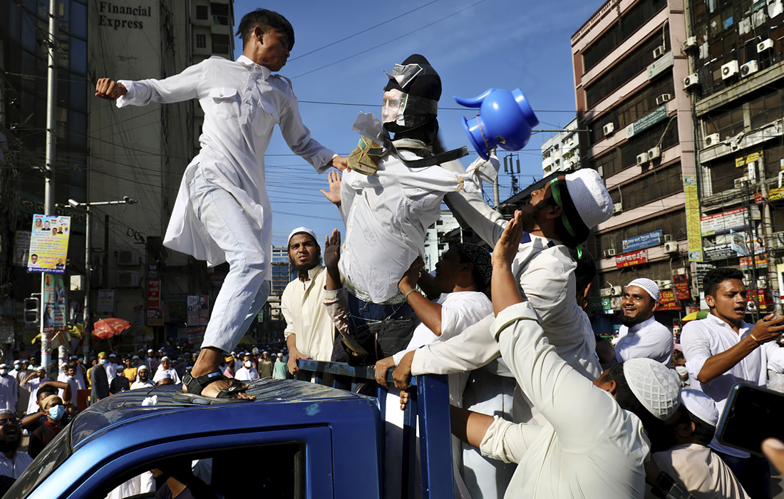 В столице Бангладеш Дакке продолжаются акции протеста с призывом к бойкоту французских продуктов и осуждением президента Франции Эммануэля Макрона за его комментарии по поводу карикатур на пророка Мухаммеда