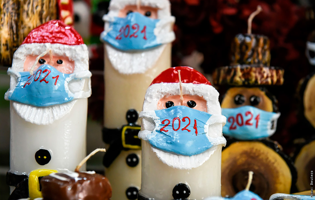 18 ноября. Пандемия коронавируса повлияла на оформление украшений к Рождеству. На фото: магазин свеч в Салониках, Греция.
