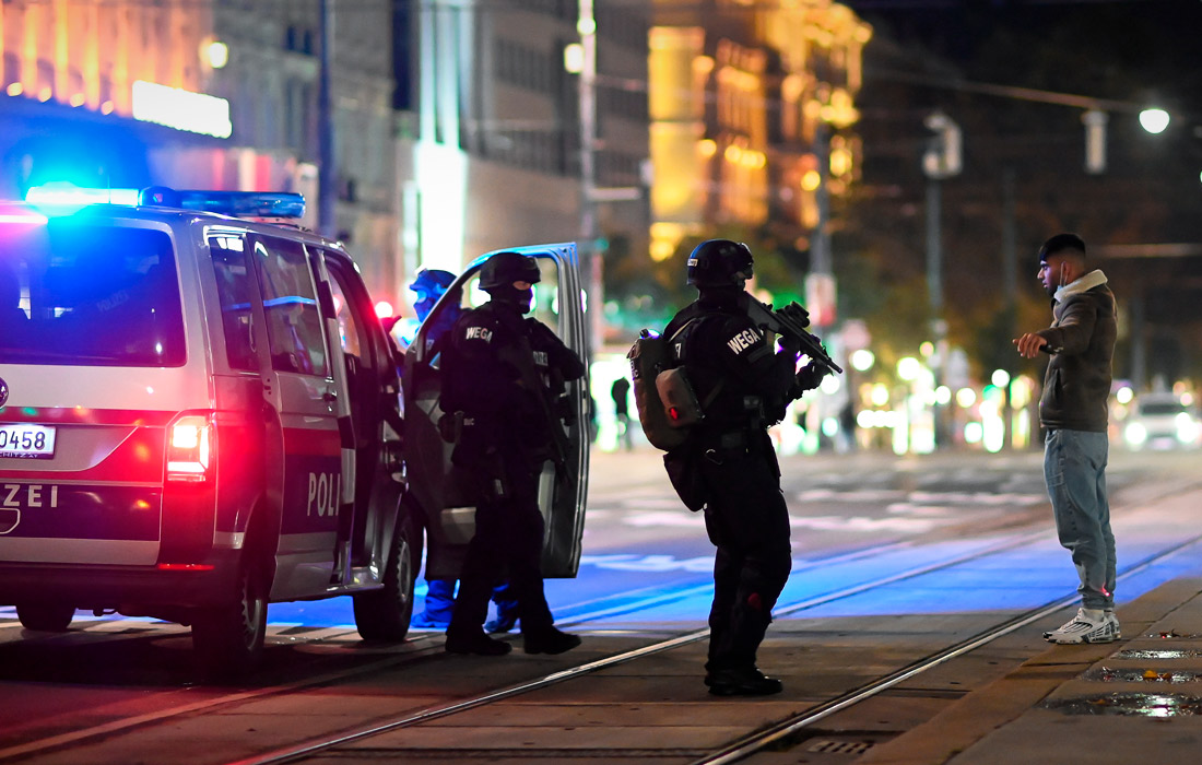 Вечером в понедельник, 2 ноября, неизвестные совершили серию нападений со стрельбой в шести разных местах в Вене. В результате терактов погибли три человека, а также был убит один нападавший. Центр города оцеплен полицией. К спецоперации подключились военные. Жителей города просили не выходить на улицу.