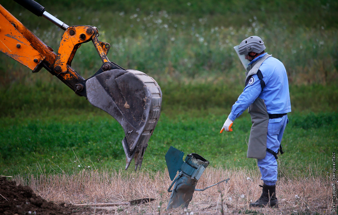 Сотрудник Национального агентства по разминированию территорий Азербайджана во время работы на одном из полей Тертерского района