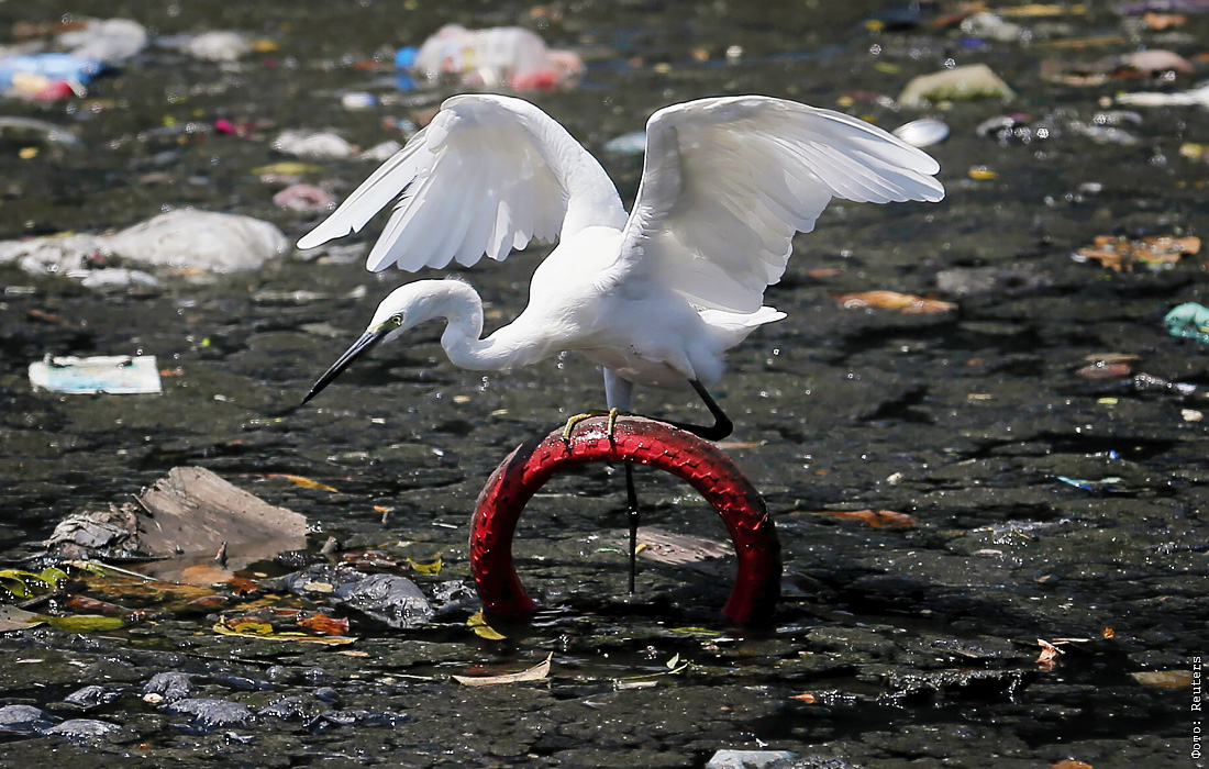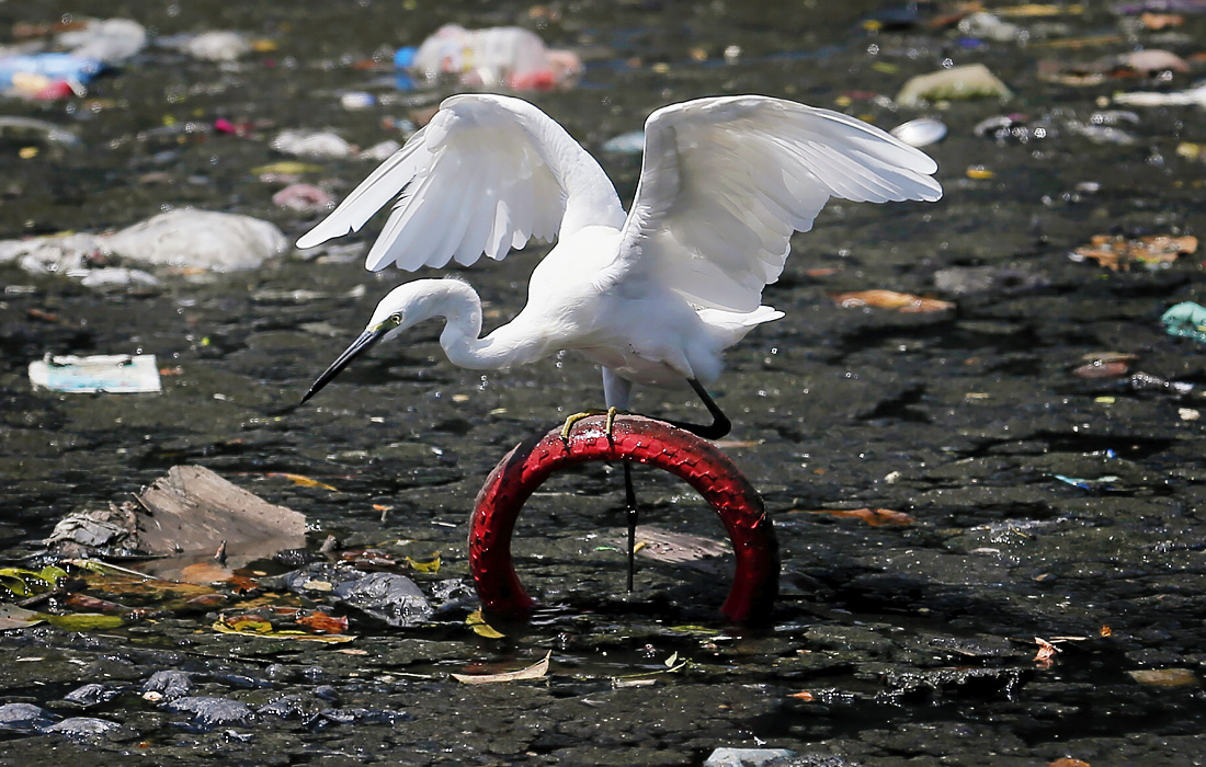 Цапля на свалке в Коломбо, Шри-Ланка
