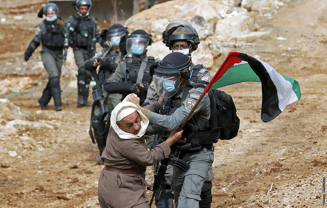 Израильская пограничная полиция во время акции протеста против еврейских поселений и президента США Дональда Трампа в Бейт-Дагане